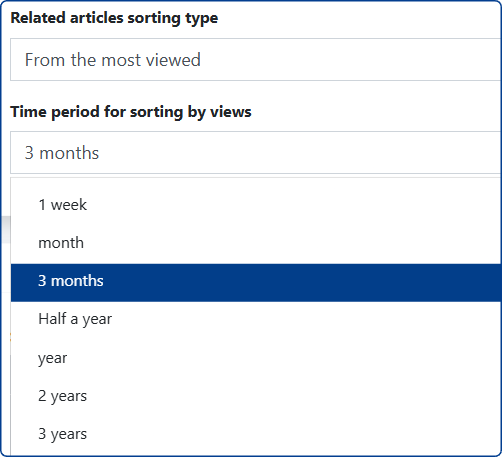 B. Number of displayed articles Enter how many related articles should be displayed under each article.