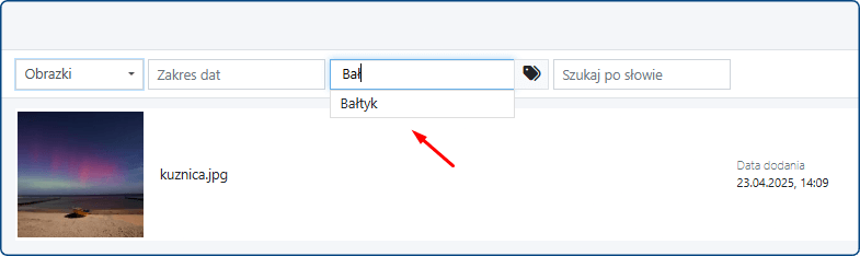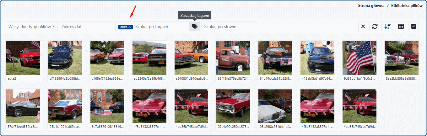 Umożliwia wyszukanie plików przypisanych do konkretnego tagu wewnątrz biblioteki plików