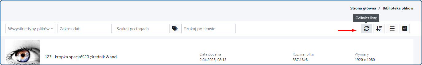 W prawym górnym rogu okna Biblioteki plików znajdują się przyciski funkcyjne umożliwiające:
