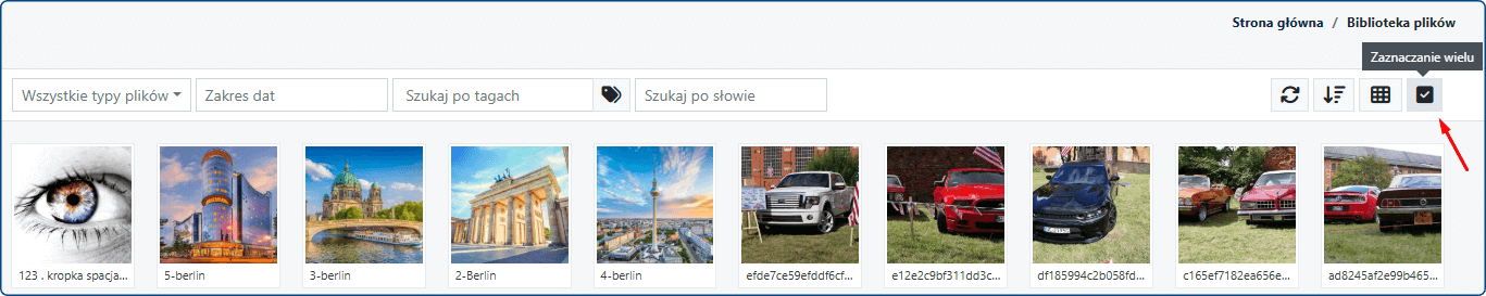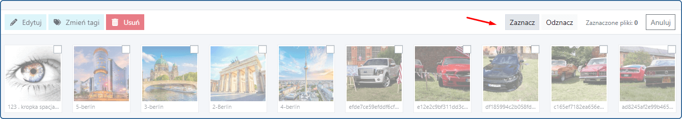 Kliknięcie w szary przycisk Zaznacz spowoduje zaznaczenie wszystkich plików dostępnych na liście