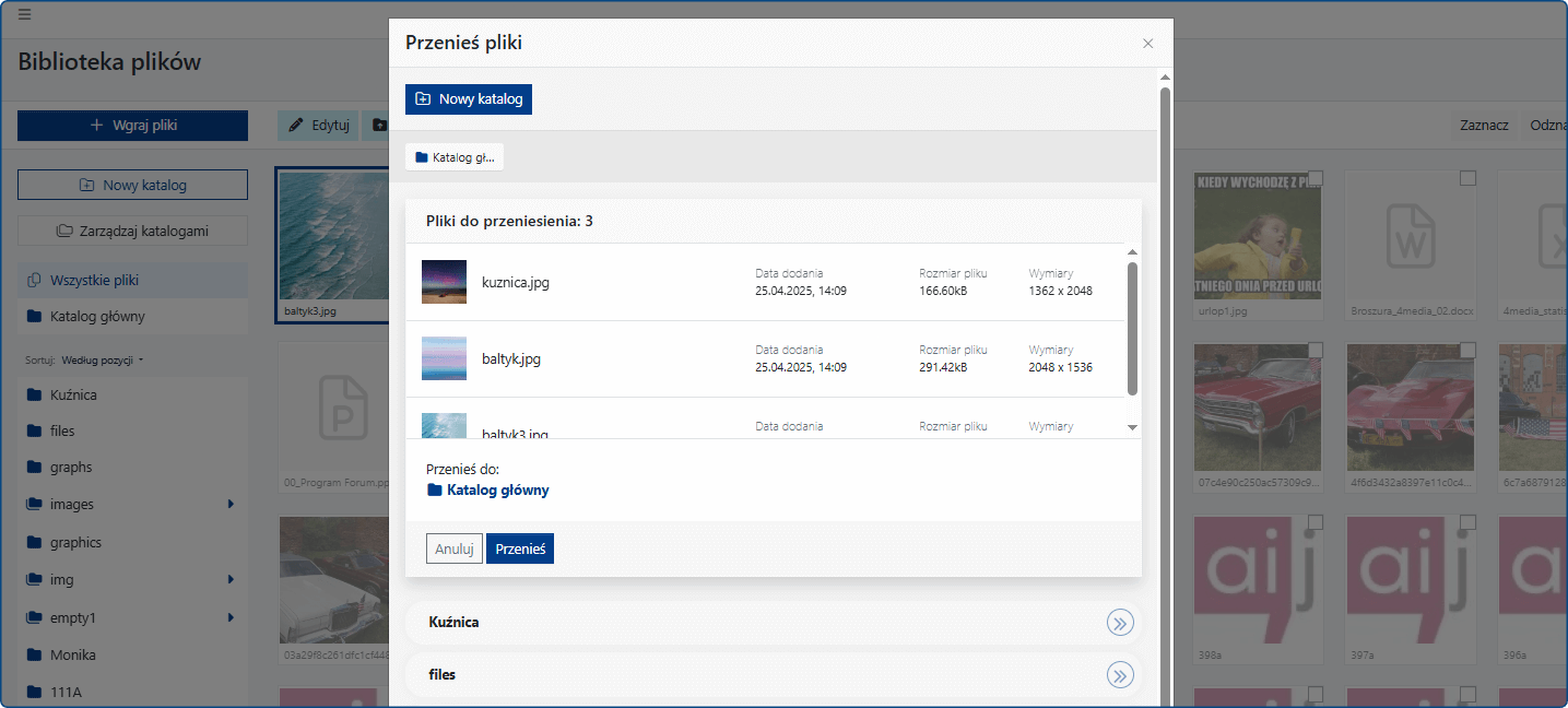 Pliki wgrane do Biblioteki mogą być wielokrotnie przenoszone z katalogu do katalogu - link źródłowy do pliku nie ulegnie zmianie