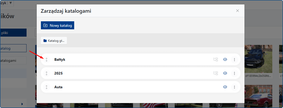 Za pomocą funkcji drag & drop przeciągamy katalogi (góra-dół) na liście, układając je w dedykowanej kolejności.