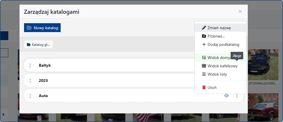 4. Zmiana widoku domyślnego listy plików dla danego katalogu (lista lub układ kafelkowy)