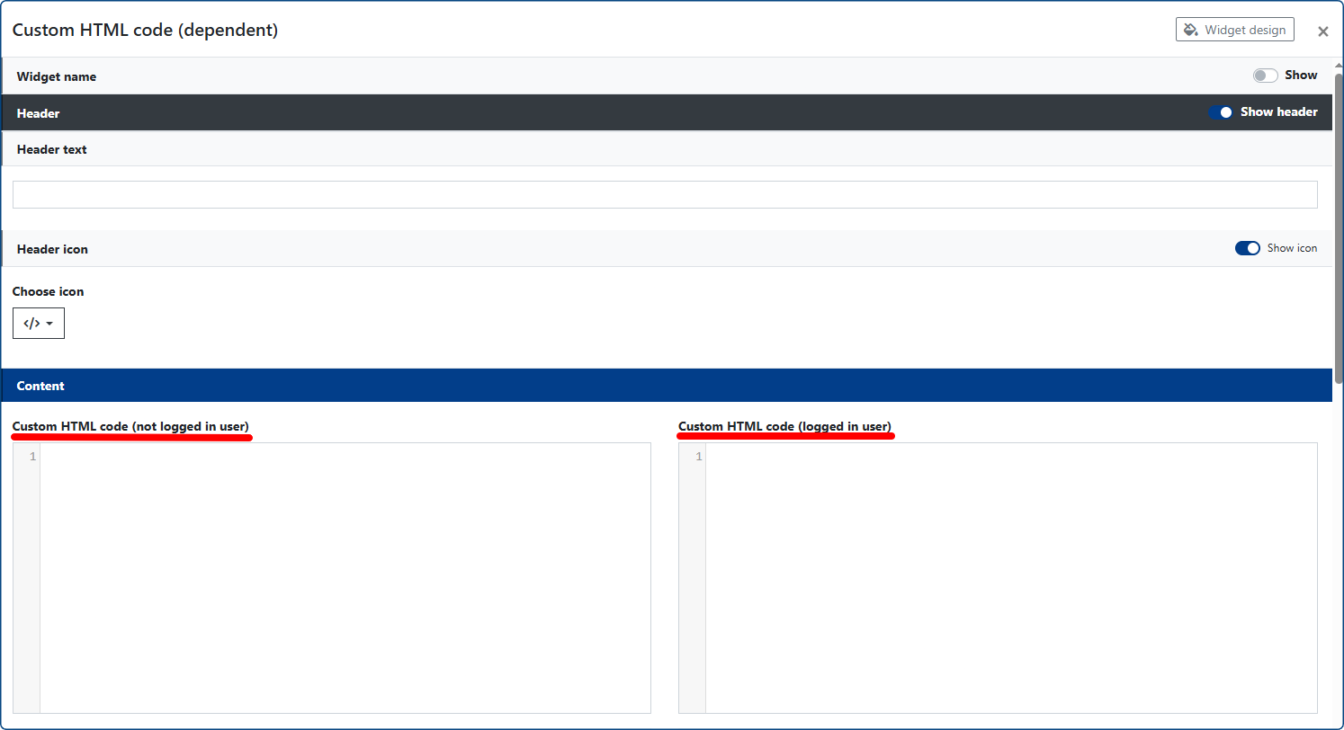 - Custom HTML (Logged-Out User) – the version of the code that will be displayed only to users who are not logged in.
