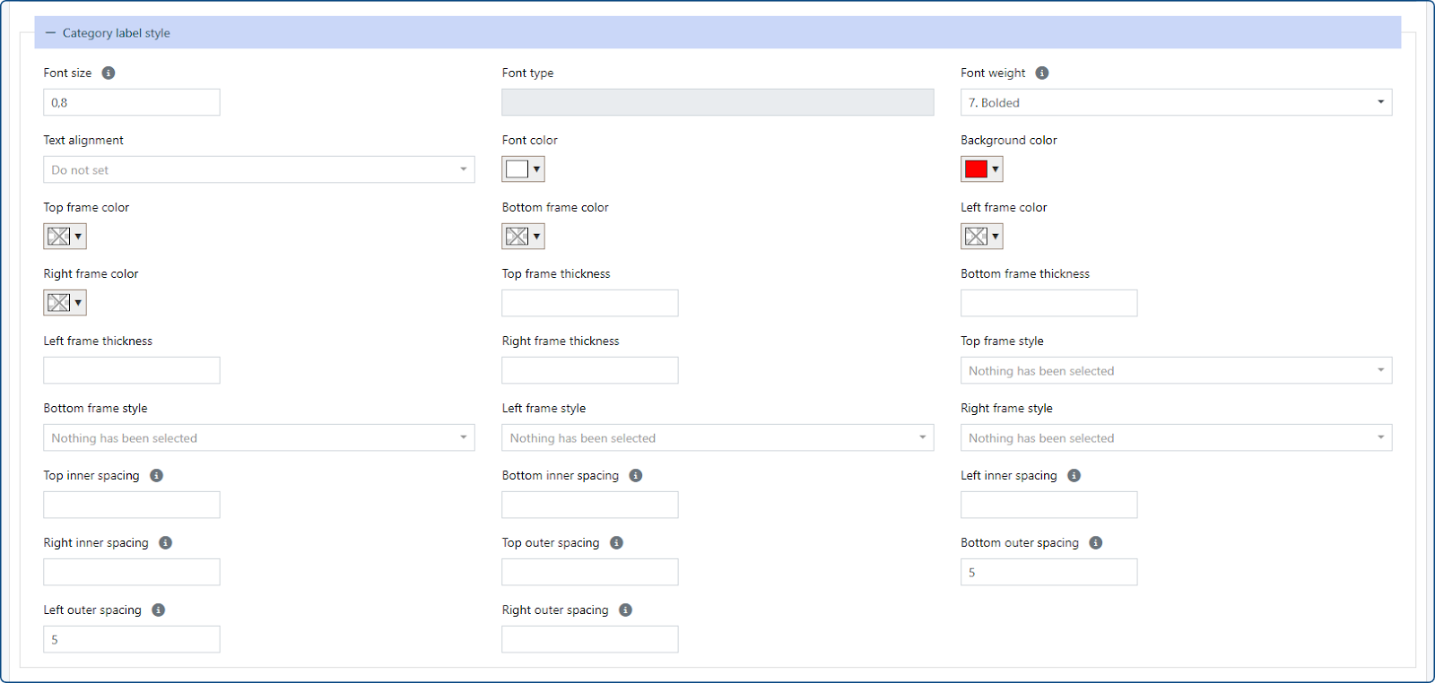 Here you can adjust the spacing (expressed in pixels), label’s frame color, etc.