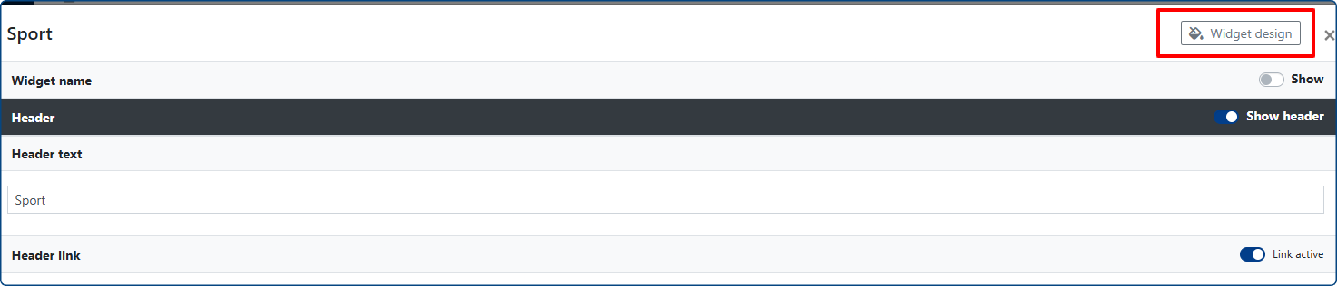 You can also do the same thing for an individual widget directly while editing it. The [Widget design] button gives you access to the same settings described above but these will apply only the widget that is edited.